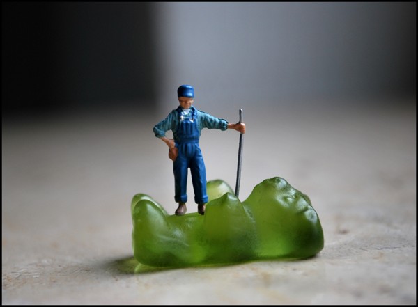 Germany-based photographer Bettina Gber creates a small world of adventures with her tiny people and life-sized props. Using toy figures, Gber arranges scenes into her “just for fun” project, entitled Small People, and then photographs the scene as a documentation of the event. She dubs each piece with humorous titles that are appropriate to the activity, including Morning Post!, Coffee Anyone?, and Would you like some meat?