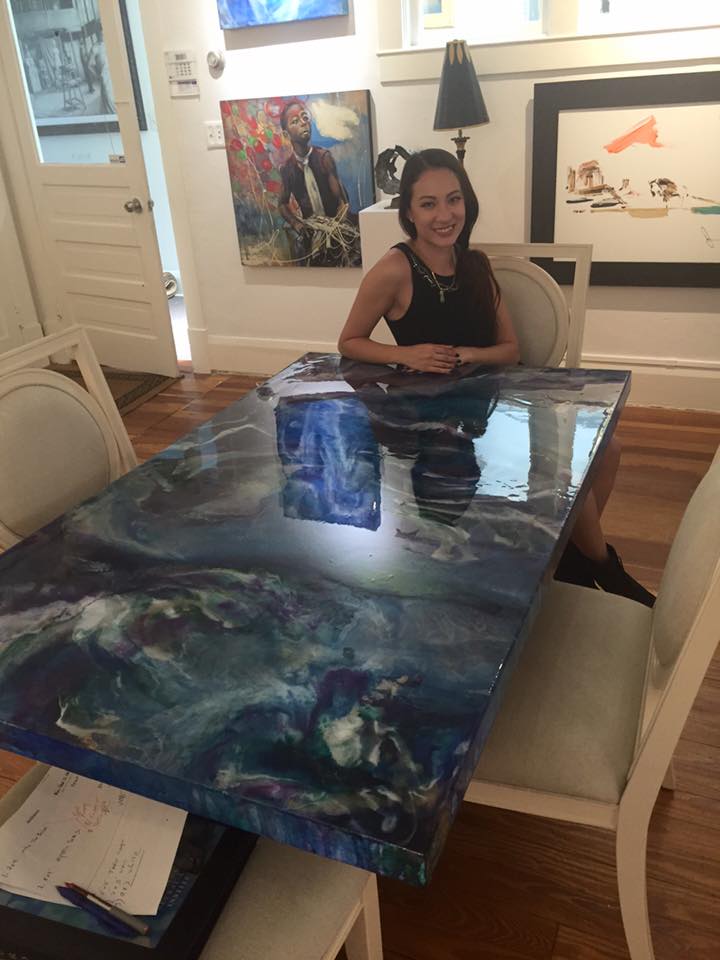 Contemporary artist Bich Nguyen mixes acrylic paint and resin to create mesmerizing swirls of color, which appear like brightly hued hot springs seen from above, or perhaps nebulae given the tie-dye treatment. Her most astounding recent work is a five-by-three-foot wooden panel that she’s mounted on glass legs to create a table almost too dazzling to use.
