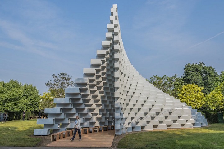 Each year London’s Serpentine Gallery Pavilion, locked in the heart of Kensinginton Gardens, is transformed in unexpected ways by legendary names in the field of architecture. This year, the space was taken over by Danish architect Bjarke Ingels, of the design firm BIG, who combined simple minimalism with an air of whimsical fancy. His undulating tower of fiberglass boxes has a transience in both form and function, serving as an art pavilion, lecture space, music venue and more for eager crowds of visitors.