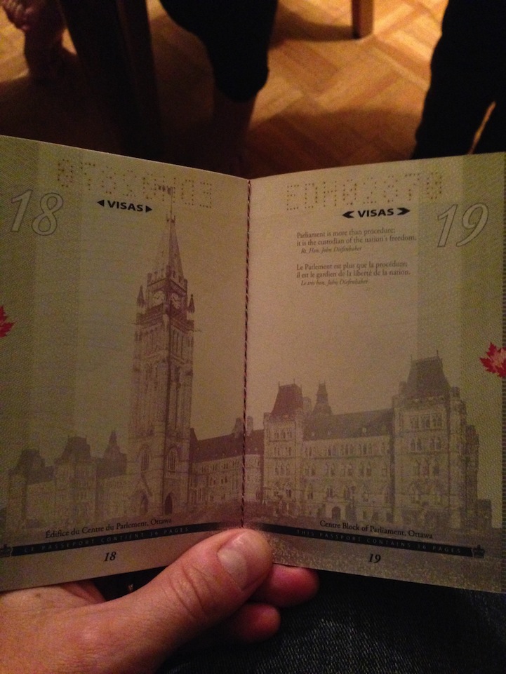 With a little help from a UV black light, the most recent version of the Canadian passport reveals spectacular patterns and a surprisingly vibrant neon glow. Reddit user Chachichachichicken recently shared this discovery in an Imgur photo gallery that quickly went viral. The passport pages transform from flat parchment decorated with subtle lines to colorful, hologram-like maple leaves, exploding fireworks that hover over Parliament, and a roomful of politicians outlined in neon.