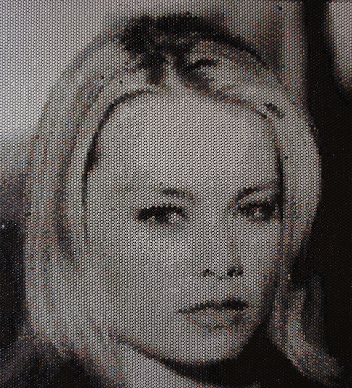“On the one hand, the bubble refers to dots or pixels, the building blocks of the technological world that surrounds us,” states the gallery. “Pixels on computer screens store our memories with social media platforms like Facebook, Twitter, and Instagram. The process of injecting bubble wrap with paint in order to create one coherent picture, references pixilation as a combination of 1's and 0's that result in an image for us to consume. On the other hand, when a likeness of a loved one is injected into bubble wrap, the material's inherent purpose is underscored – an image is being preserved as a memory in an object that is utilized for protection and safeguarding.”
