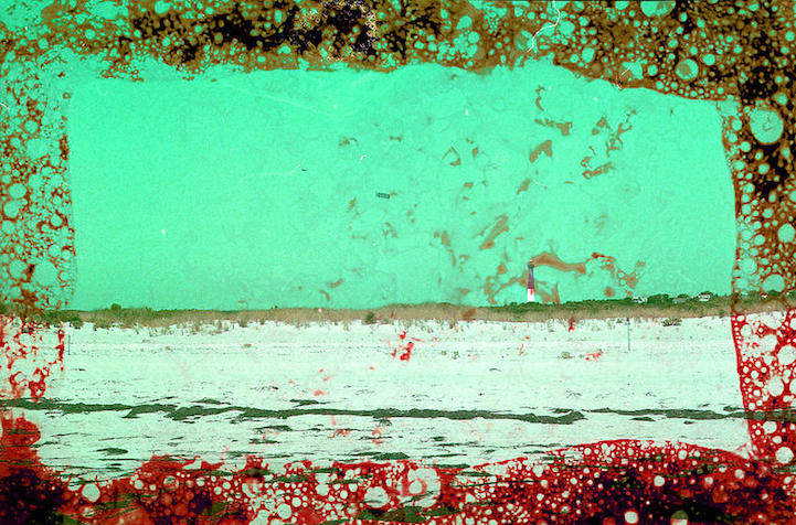 Brandon Seidler draws attention to the damage humans have done to the environment by photographing natural landscapes that have been altered by chemical pollution and then soaking the film in the same harsh chemicals that were found at the site. The developed film, which has been corroded by different acids, yields distorted, uncanny images of a world transformed by manmade toxins.
