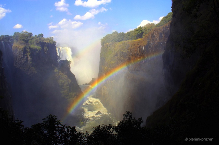 One of the most beautiful shots of the falls is by photographer Nicole Cambr (see above). “Capturing the rainbow over the falls was more challenging than I thought especially with the spray,” she writes on her 500px page. “On Livingstone Island, on top of the falls, I finally managed to capture this full rainbow.”
