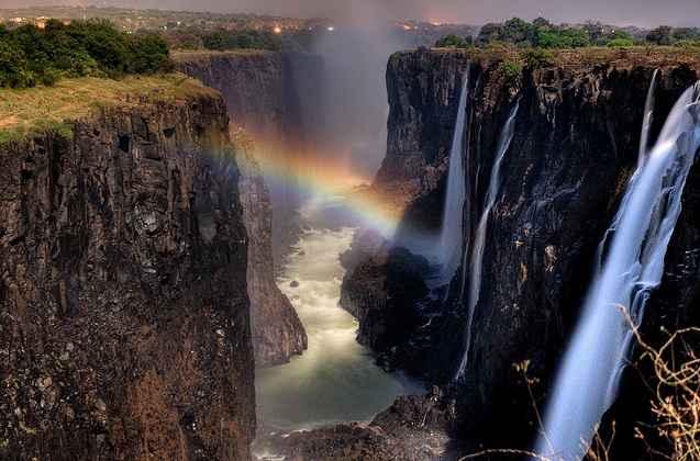 For photographers, this is a must-visit destination, not only because of all the breathtaking views but because you can capture beautiful rainbows there during the day and at night. Victoria Falls is one of a limited number of sites around the world where you can see a moonbow or lunar rainbow. (As you may recall, a normal rainbow is the product of sunlight reflecting through water and a lunar rainbow is the result of moonlight reflecting through water.)