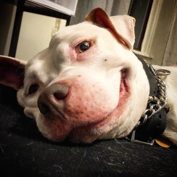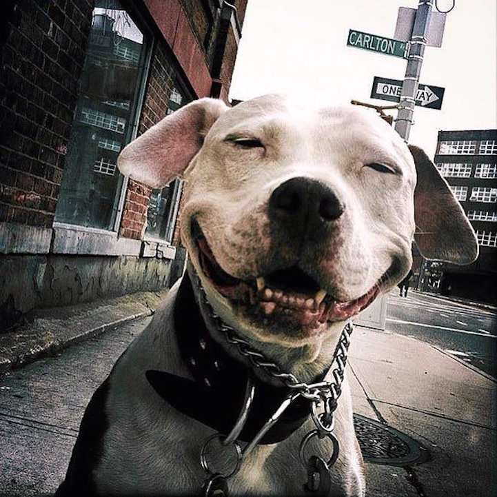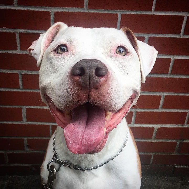 Even if you aren't a pit bull fan, this dog's infectious grin will have you smiling in no time. With so much happiness captured in each frame, it's hard to think that just over 12 years ago, Brinks was a stray dog abandoned on the streets of Brooklyn. Luckily, he was taken in by a loving human named Jon, who already was a seasoned dog companion. After a month of posting “Lost Dog” flyers with no response, Jon realized that Brinks was meant to stay with him. And how could he not have fallen in love with that beaming face?