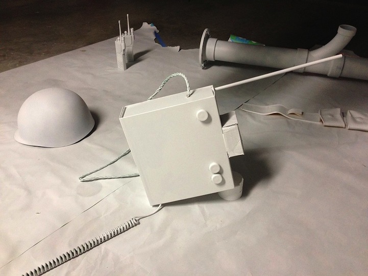 Each of the portable objects, like the rest of their costumes, were the time-consuming results of meticulous preparation. Everything was coating in primer and later spray painted green, apart from their own skin which was turned green through applied makeup. The process, though simple enough, turned out to be quite the task. “It was insane. For my suit alone it was about 8 cans of primer, and then maybe 6 cans of green,” says the dedicated Halloween enthusiast. “[My suit] was so stiff that it was hilarious trying to get our shoes on. I didn't realize until the end of the night that my arms were totally cut up on the inside from bending my arm. Ouch! And taking a pee? A military-grade challenge for sure.”