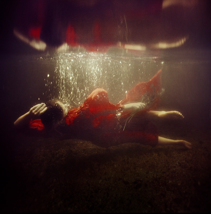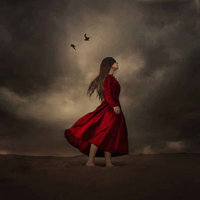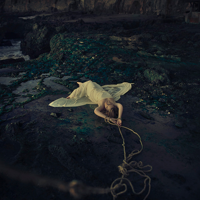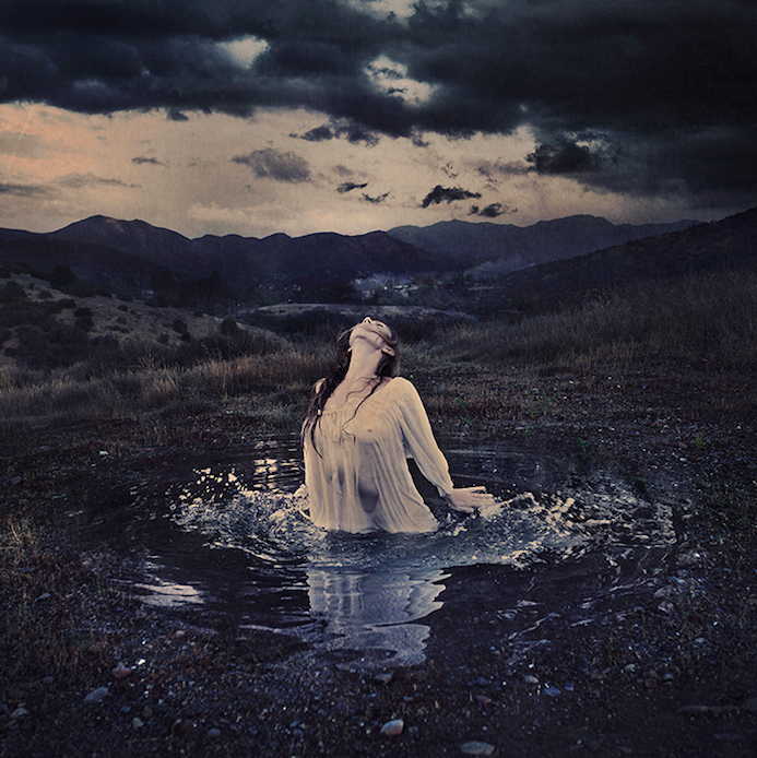 Los Angeles-based photographer Brooke Shaden crafts hauntingly-beautiful works that seem to live in their own world. As we've seen before, she's no stranger to composing dark-yet-hopeful images of women in surreal settings. People shine and objects levitate in outdoor landscapes whose dreamy coloring evokes a painterly quality to the work. It's clear that a lot of care and consideration was given to every part of the surrounding environment, and we see small-yet-fantastic details like a field of wildflowers or colorful teal rocks in the background.