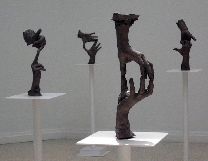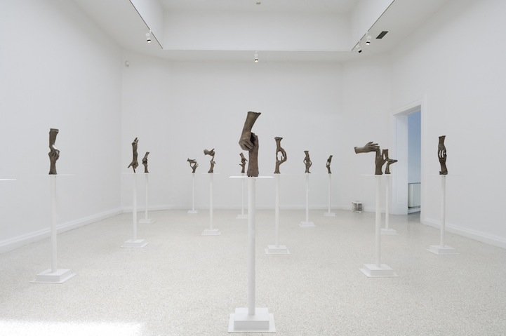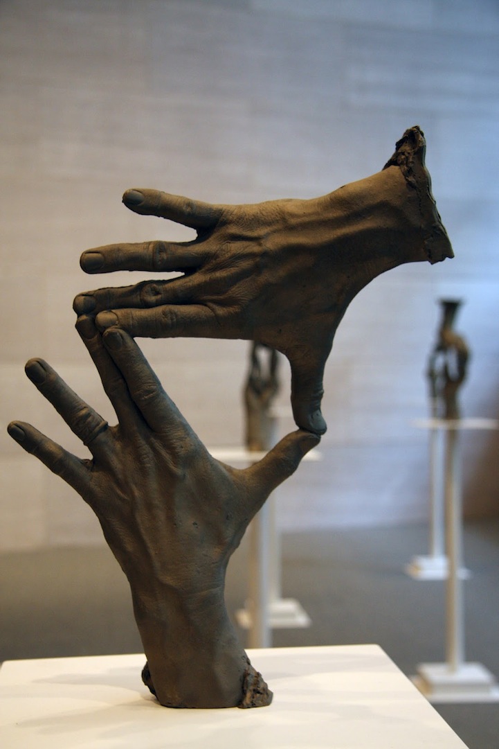 In some instances, the team of hands seem to mirror each other while, at other times, the figures in each pair are creating their own shapes to complement each other. They're either working in unison to produce distinct configurations or surreally extending from their wrists in opposite directions. The result is a collection of figurative sculptures that seem almost abstract.