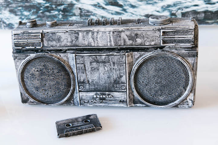 We often associate fossils with the dinosaurs, but artist Jeff Klarin has a different idea of what's considered a relic. Working under the name Bughouse, he has created Future Fossils, a collection of sculptures that showcase once-loved yet now-outdated technological devices. Among them are the iconic boombox, Polaroid camera, and Atari joystick.