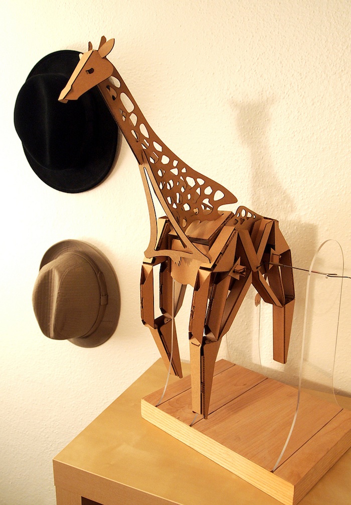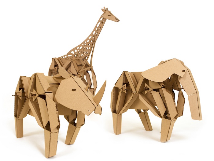 If you're looking for a DIY project that's not only fun but educational, you may want to back this Kickstarter project. Alyssa Hamel just emailed us telling us about Kinetic Creatures, a set of three cardboard animal sculptures that actually walk! You have to watch the video – these creatures come alive with a simple mechanical motion! They can even walk on their own with a gear kit. Industrial designer Lucas Ainsworth and artist and art teacher Alyssa Hamel worked four years on this project. I can't help but think how perfect this would be for that valuable kid/parent time.
