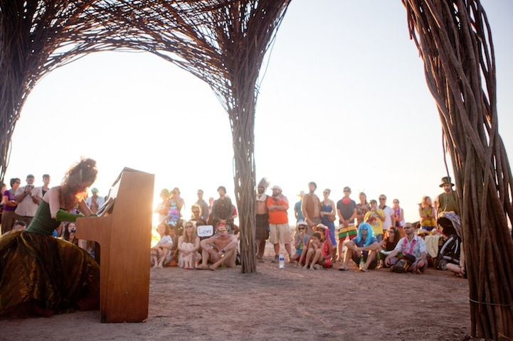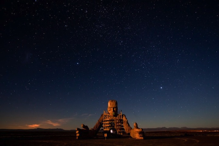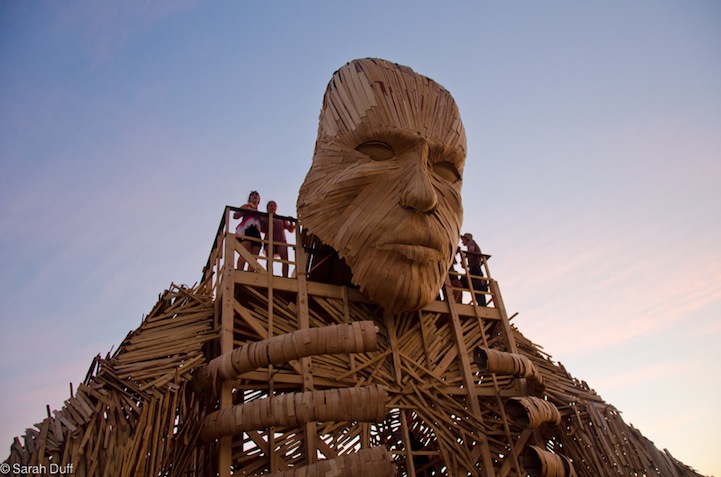 Following the basic guidelines, the festival's 2013 Archetypes theme welcomed thousands of visitors and participants with some truly incredible installations. One of the most prominent figures included artist Daniel Popper's massive, 9-meter-high sculpture of a man with outstretched arms. The three-story structure was fitted with custom LED lights with seventeen different simulations programmed by Justin Eastman. Other structures ranged from abstract pieces of land art to illuminated pathways.