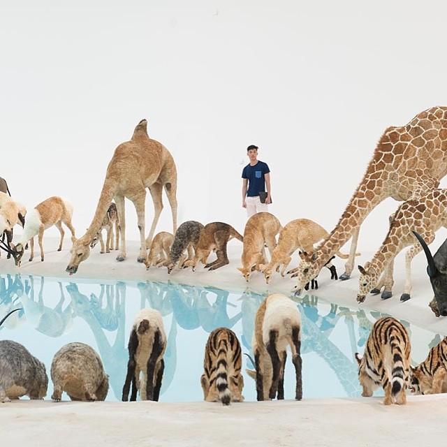 Many visitors have already started uploading their own Instagram photos saying things like, “Wow!! Visual feast. 99 Animals. Turquoise. Water. White. Surreal” and “Cai illustrates his message to the globe by these 99 life-like animals sculpture, and things just become complete with the participation of some human beings.” They are encouraged by the museum to tag their photos with #caiguoqiang or #fallingbacktoearth.
