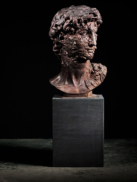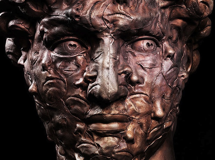 David / Self-portrait 11 is an intriguing redesign of Michelangelo's David that features dozens of sculptor Caspar Berger's own face. The bronze bust is an artistic re-imagining from Berger's ongoing Self-portraits series that offers a surreal take on a classic work of art. Despite seeming somewhat off from a distance, the sculptural portrait is in fact a presentation of both David and Berger himself. Upon closer inspection, one can see that the “skin” is an unconventional formation of tiny faces, made in the likeness of the artist.