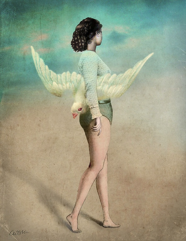 Graphic designer and mother of two, Catrin Welz-Stein lives and works in Malaysia where she creates stunningly surreal works. Focused on mixed media, she breathes new life into vintage photos by experimenting in Photoshop, taking pictures apart and assembling them into new content. As she told ImageKind, “A large part of my work is the search for license-free images, illustrations or photos, for which copyright has long expired. Old books, magazines and the Internet are my primary resources for that. Once I have found the fitting image, I break it into pieces and then weave it back together mixed with other images. I transform, assemble and retouch the pieces, until the original image is no longer recognizable and an entirely new image is created.”