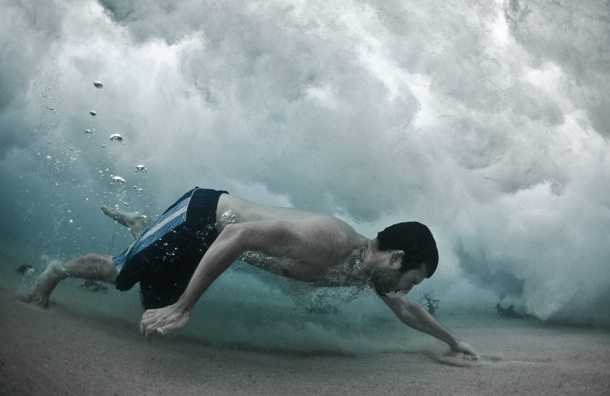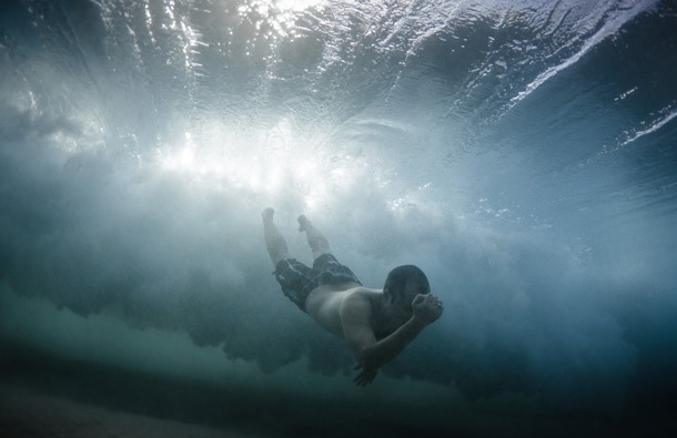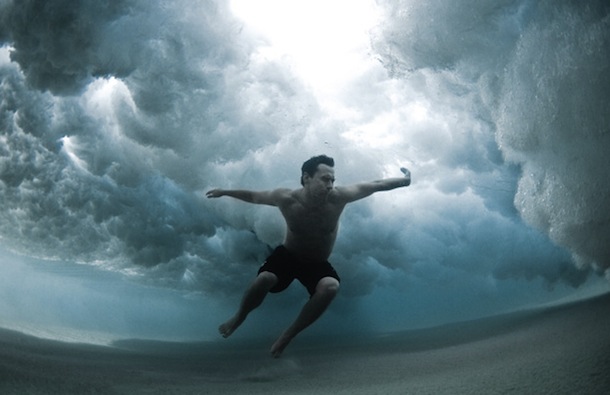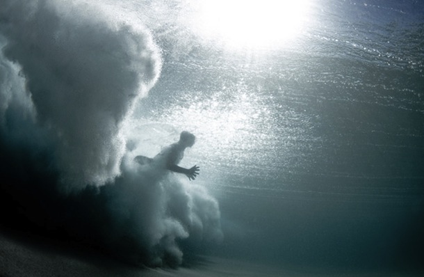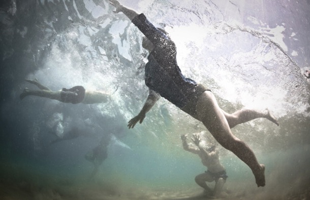 Shot of the Australian coast, Tipple's photos showcase both the ocean's beauty and its potentially frightening power; crisp, clear waters mix with crashing white plumes as his subjects navigate their way in the underwater world. He's quick to note that he's often the one getting thrashed around. “Most of the time I come off worse than the people I'm shooting,” he says. “Generally I'm looking sidewards to track where they are in relation to where the wave is, and tend to pay more attention to them than the wave; which can rock me pretty hard.”