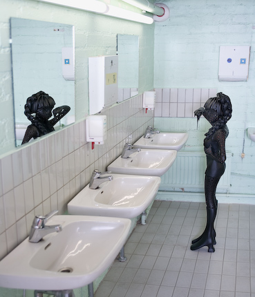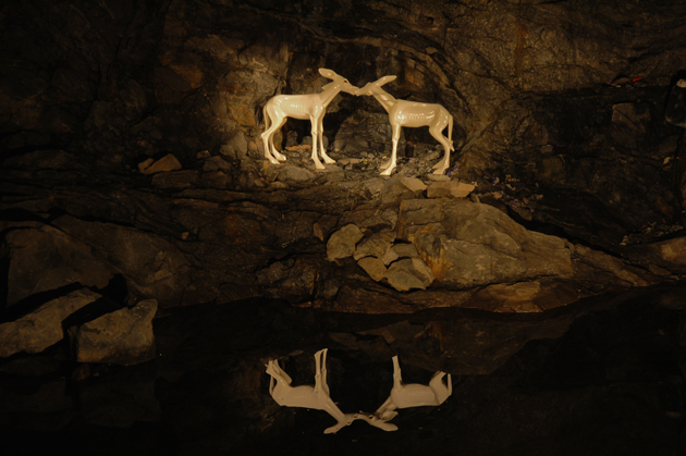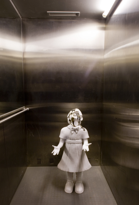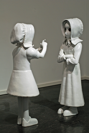 Kim Simonsoon is a young Finnish sculptor who lives in Helsinki. He makes striking ceramic sculptures of cute, big-eyed young girls and deer, derived from Japanese manga comics. His work questions the role of the child and nature in the modern world.