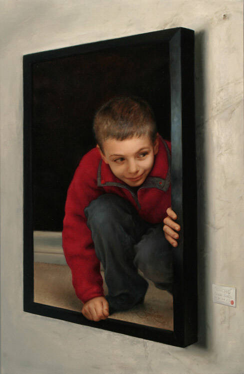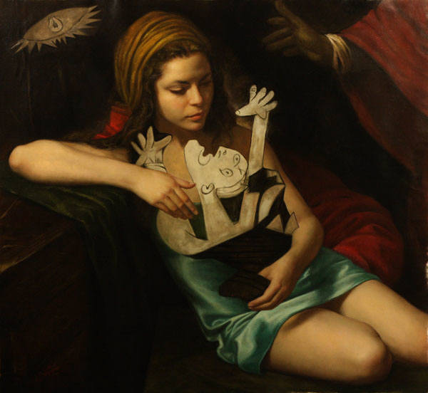 After studying the work of fine artists in Italy, allowing him to hone his craft, Santos says, “I came back with this curriculum, the experience of traditional painting in the classical manner, which I mix with the experience I had in conceptual art.” He aptly adds, “My tools are imagination and technique; they are the essence and the basis of my work.”