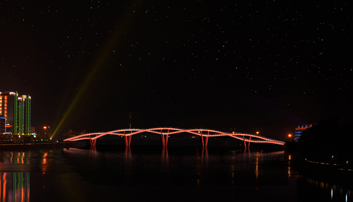 Like a patriotic strand of DNA, the Nanhe River Landscape Bridge in Xinjin, China was designed by New York studio WXY Architecture and Weidlinger Associates Consulting Engineers.