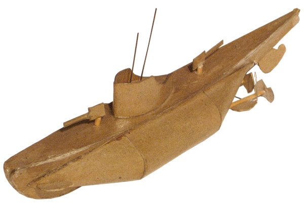The meticulous arrangement of ships hang down from a thin wire which produces an illusion that they are floating through the air. The individual submarines hang like a school of fish overhead, swimming through an imaginary sea. The identical sculptures symbolize the many US Navy ships that were built from 1890 through 1987 (the date the project was first created).