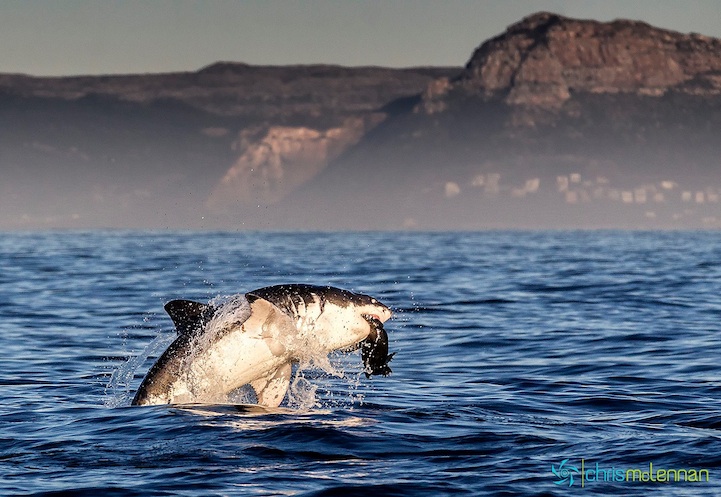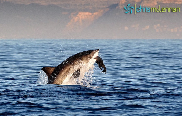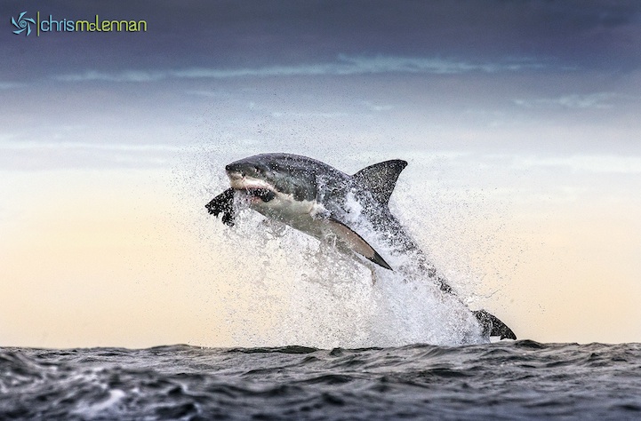 Call it skill, luck or just being at the right place at the right time. Chris McLennan is an international award winning travel and adventure photographer who's captured some truly amazing photos of great white sharks breaching.