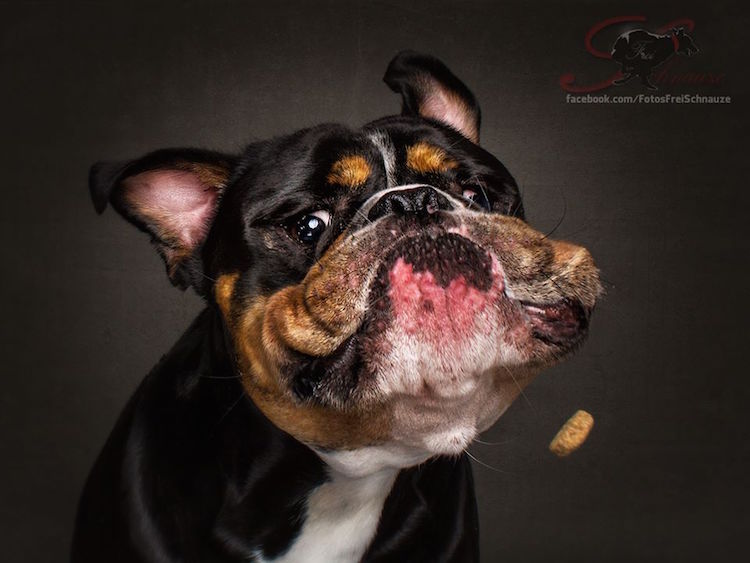 At the smell of a crispy biscuit and the sound of the word ‘treat,' dogs tend to lose control. They may leap, their eyes may widen, their jowls may wildly flop about. In his series, Dogs Catching Treats, German photographer Christian Vieler has captured that magical moment right before the thrown treat is caught. Vieler has been documenting dogs in his studio for three years, which has built up a portfolio of unique catching strategies. Some dogs go all in enthusiastically with mouth wide open. Others have a more lackadaisical approach. No matter if they present a nervous smile or a more skeptical face, the portraits showcase each dog's personality in a downright adorable way.