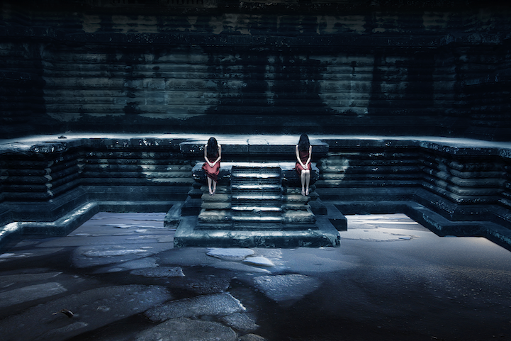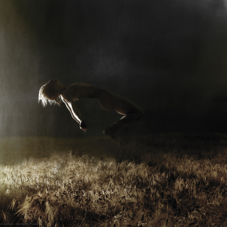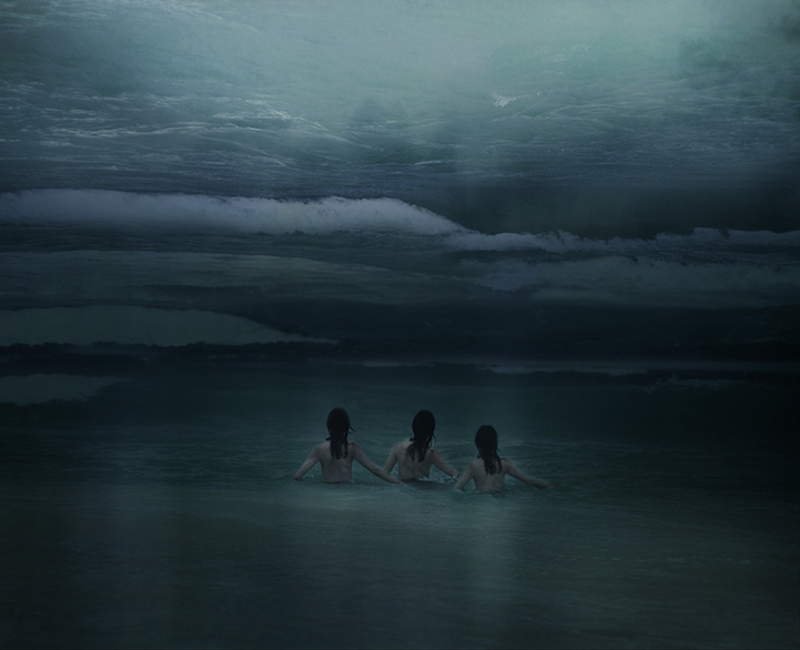 Despite the ambiguity of many of Muraton's works, there is a unique concept behind each image. A spectacular self-portrait featuring Muraton submerged underwater, a halo-like bubble surrounding her head, is about a wanderer whose journey goes deeper beyond earth and sky. A photo depicting a woman sprawled on a bridge, dripping phosphorescence into a river, questions the origin of galaxies and the universe. Muraton's series of photos showing the same three female figures evokes the imagery of the Furies from classical Greek mythology. The storytelling quality of her photos, paired with their melancholic beauty, make for a truly phenomenal body of work.