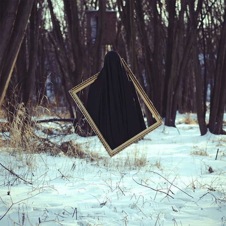 Photographer Christopher Ryan McKenney plays with the visibility of men in nature, masking their faces in draped cloth or removing their heads entirely. Each surreal image depicts an incomplete man who appears to be in the process of either materializing or disappearing into thin air. Mystery surrounds the figure in each frame, which can strangely be seen within a physical frame in several instances.