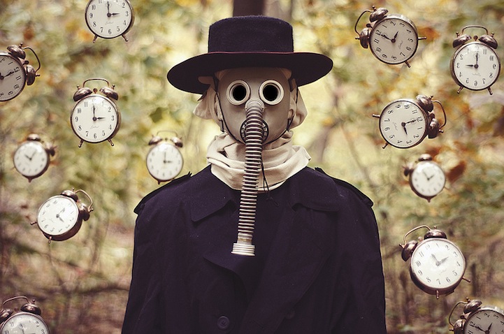 Though these men seem to be unrelated to one another, they share a sense of escape and a level of discomfort that keeps them hidden from sight. Deep in the remote woods, these disembodied and veiled figures are trapped somewhere in between two worlds, facing their own personal struggles. McKenney says of his image featuring a man with a lampshade over his head: “This picture represents people having ideas but covering them up in fear of failure or what other people will think.”