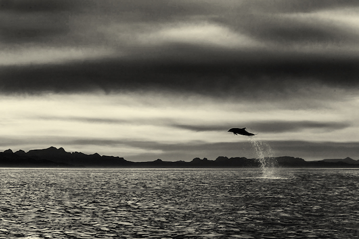 Swann's fascinating images are almost minimalist in appearance, focusing on clean composition and subtle tones to bring out the elegance of his subjects up close. Some of his newest photos, which he shared exclusively with us, reveal a black-and-white aesthetic that Swann has been experimenting with lately. Unexpected details are highlighted in these achromatic shots, such as the glimpse of an orca seen through aquatic ripples, or the understated gleam of a dolphin's tail right below the surface of the water. Subtle and refined, the images bring to life the romance and poetry of the sea and its inhabitants.