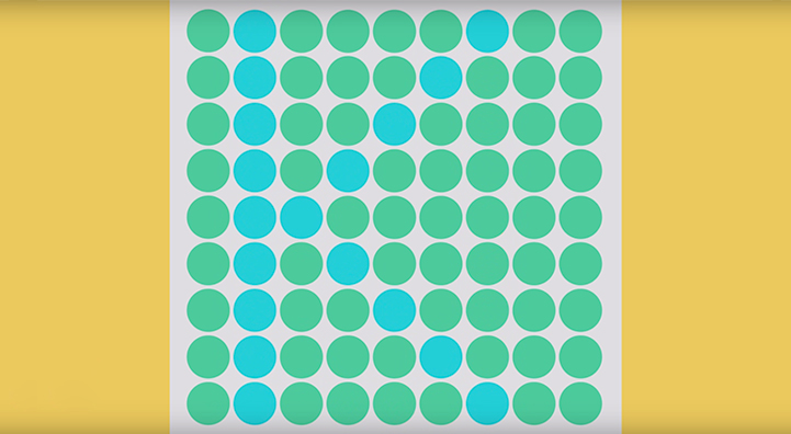 The video features four rounds of two different color combinations, each more difficult than the last. In the beginning, when the hues offer a lot of contrast, you might think, “This is pretty easy! I’m great at identifying colors!” As the test goes on, however, the difference between the two becomes increasingly subtle. Coupled with a time limit, it’s seemingly impossible to figure out what letter is staring back at you.