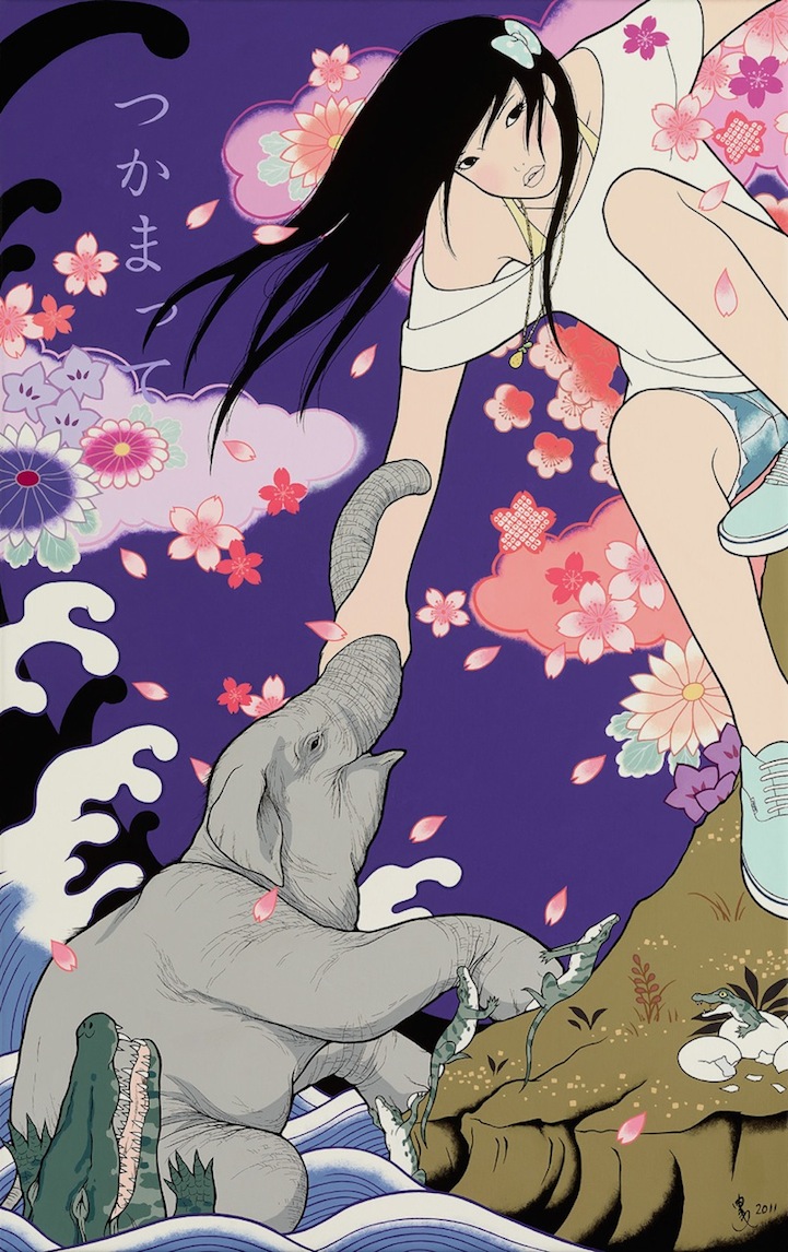 Japanese artist Yumiko Kayukawa's latest exhibition Coming Home is currently showing at the Roq La Rue gallery. The Seattle-based painter continues creating her dynamic, color saturated paintings of independent women surrounded by animal totems and Japanese traditional motifs. Love the level of detail in each piece.