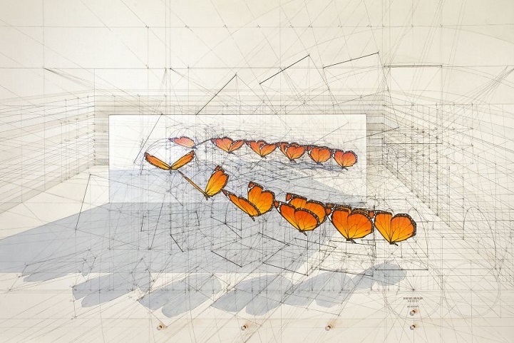 Araujo's illustrations revolve around intelligent patterns of growth that are ruled by the Golden Ratio. This special number, commonly annotated with the Greek letter Phi (?), is equal to 1.618 and can be seen in all sorts of natural spirals, sequences, and proportions. “Phyllotaxis” is the name given for the tendency of organic things to grow in spiral patterns and this number pattern reoccurs so often in nature that some researchers have deemed it a universal law for the perfection of structures, forms, and proportions. From sea shells, leaves, crystals, and even butterfly wings, Phi can be traced throughout our environment, time and time again.
