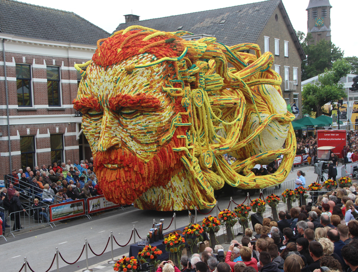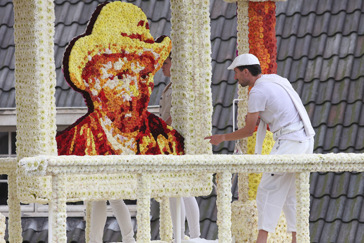This past Sunday, the renowned Corso Zundert parade made its way through the streets of Zundert, Netherlands. Giant floats adorned with hundreds of thousands of dahlia flowers were welcomed by an eager crowd, who witnessed the incredible work of 19 design teams. The iconic painter Vincent van Gogh was the inspiration and theme for their mobile sculptures, as he was born in the city 162 years ago. Float artists adopted the colors, motifs, and imagery from van Gogh's works, and some even paid homage to the famed painter by recreating his iconic self portraits.