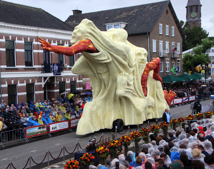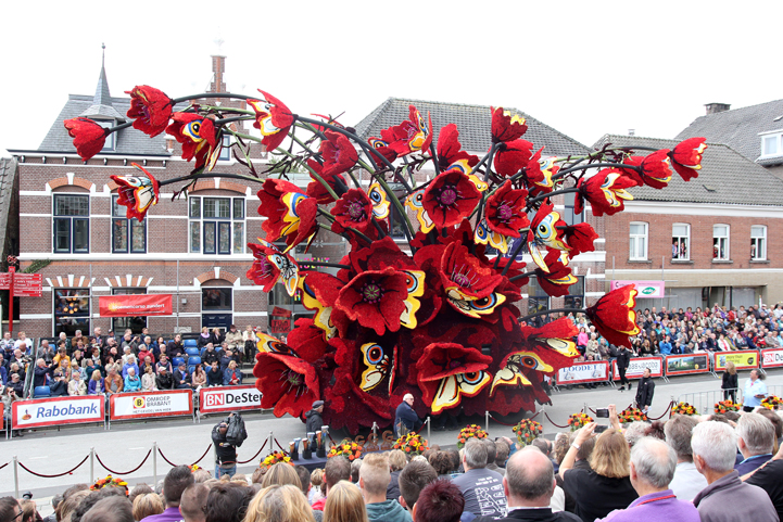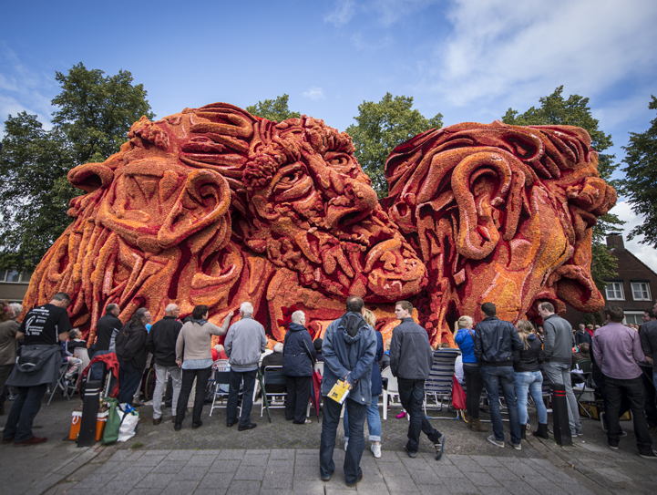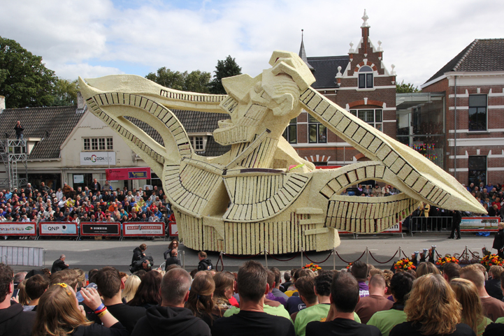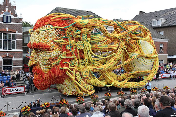 Corso Zundert was started in 1936, and it celebrates the region's reputation as a global supplier of dahlia flowers–an industry that currently occupies 81 acres with 600,000 dahlia bulbs. The parade's humble beginnings included horse-drawn carts or decorated bicycles, but in the 1960s, things began to change. Styrofoam was discovered to be a suitable building substance, and the floats started to increase in size. The material, along with iron, is still used today as the base of the floats, which have layers of papier mach applied on top. Each and every dahlia is then individually affixed to the floats, which uses about 400,000 flowers per design. With this meticulous attention to detail and dedication to the craft, it's no wonder that people flock to see the annual parade in action.