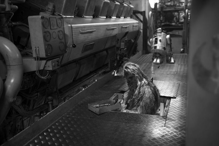 The cast of Star Wars has found themselves in an unlikely scenario–onboard an offshore drilling rig. Photographer Craig Mann has spent his career on these ships and used it as inspiration for his series No Bothans died to bring you this. The clever title is a passing reference to the statement made in Star Wars: Return of the Jedi: “Many Bothans died to bring us this information.” This fictitious group is credited with stealing the plans for the Death Star II and helping the Rebel Alliance to plan an attack on the unfinished space station.