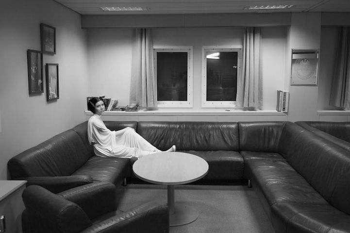 Mann's photographs feature various views of the semi-submersible rig, including locations like the drill floor, bridge, and galley. Each area has an industrial feel to it and mimics the look of a space ship. After snapping pictures of his rig, Mann then Photoshopped various Star Wars characters in it. Darth Vader, Princess Leia, R2-D2, Chewbacca, and many more make an appearance in the project, which took him between 20 and 25 hours to complete–often during breaks between shifts.
