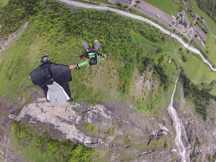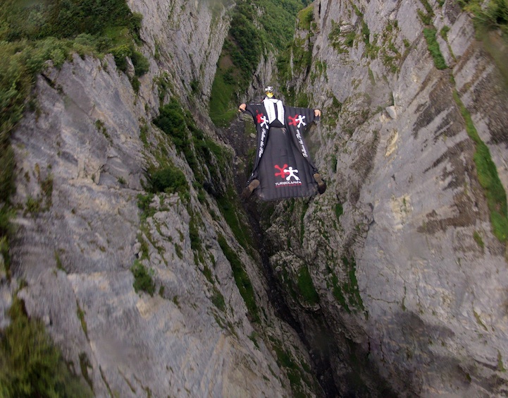 Wingsuit flyby. Amazing. *Correction – not a flyby but a true dock! With GoPro fan Barry Holubeck.