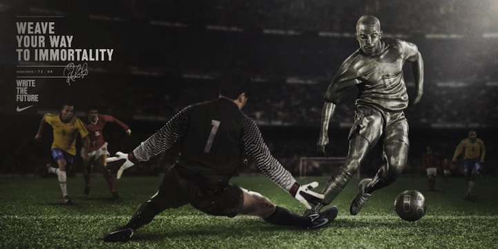 Soccer players turn into immortalized statues in these creative ads for Nike. The print ads are a nice compliment to Nike's epic World Cup commercial, that was created by Wieden + Kennedy and took over 6 months to make. I love how each soccer star is frozen in a powerful and emotional pose and how the imagery is paired with a powerful statement that can be applied to more than just sports.