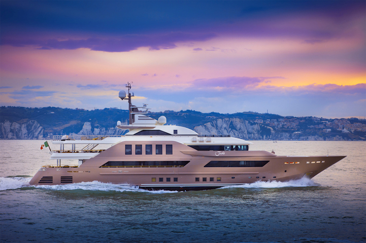 The J'Ade is designed to feel at one with the sea, and it boasts special full-height windows that offer breath-taking, panoramic views of the ocean. Recently featured at 2014 Monaco Yacht Show, it was also a finalist in the interior design award category. Zuccon International Project crafted the space with a classical focus but modern touches; leather, marble, metals, and wood all adorn the space.