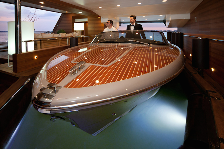 Yachts offer incredible luxury on the sea, and the Italian company CRN has produced one that's unlike any of its kind. The 196-foot vessel is named the J'Ade and is the first to feature a floating garage. This innovative addition enables the owner to store and access a 26-foot speedboat without the use of a tender lift. Its hydraulic-operated bay can dry out in three minutes and then be transformed into a terrace-accessible ocean pool.