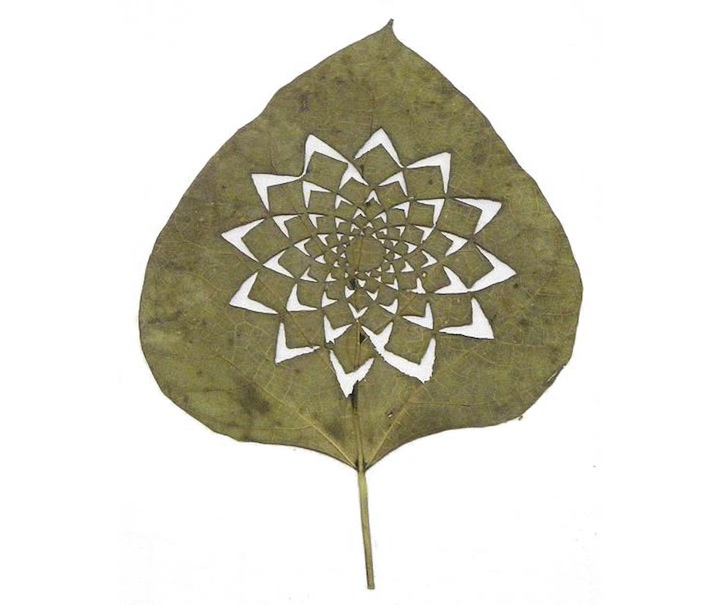 Doesn't that first image look like an oil painting? Artists are becoming more and more inventive with their choice of canvas. Lorenzo Duran's picks the perfect leaf and then washes, dries, molds and gently cuts away at it until he makes beautiful art. It's an interesting technique based on paper-cutting in China, Japan, Germany and Switzerland.