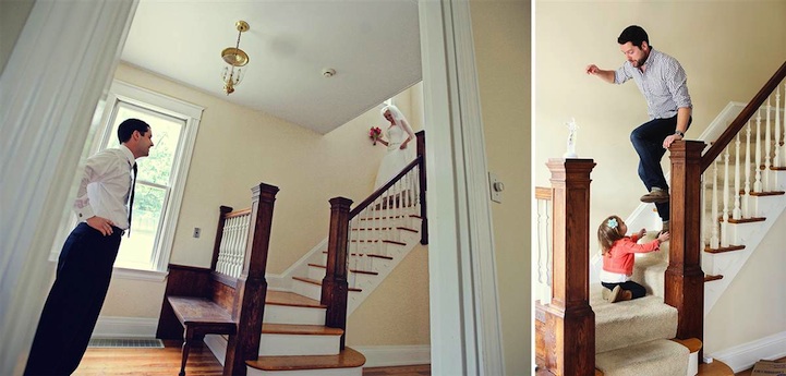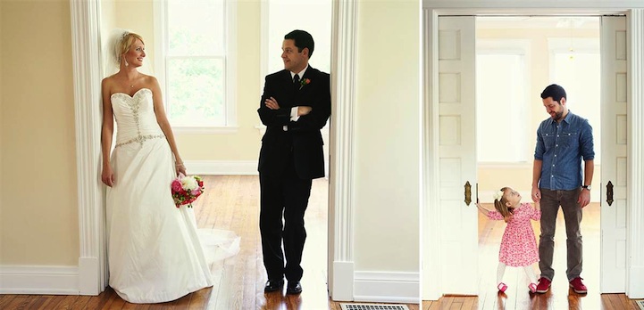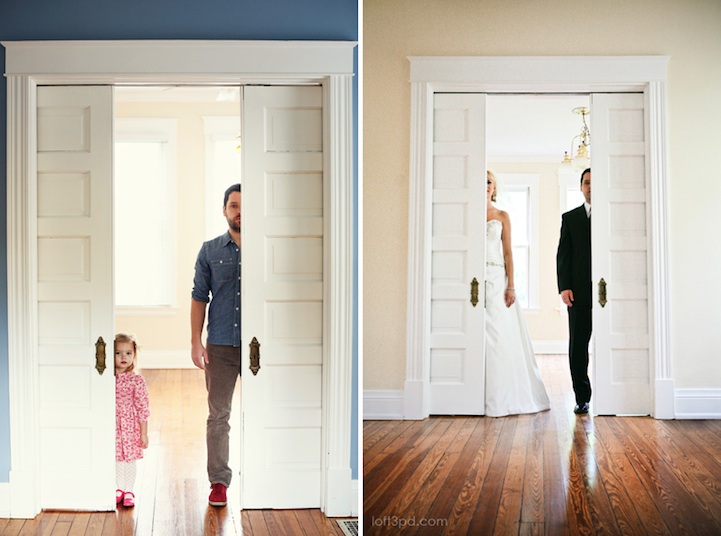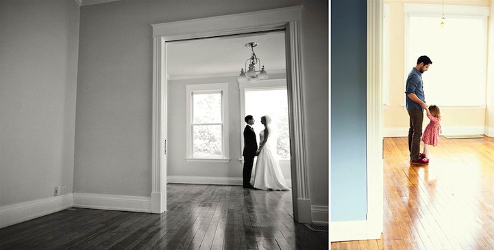 Four years earlier, in 2009, Ben and Ali had closed on the house the day before their wedding, so they had taken their wedding photos in the empty house. Now, Ben would say one last goodbye to the house, which was once again empty, with his daughter Olivia as they recreated the original wedding photos taken by the same family photographer, Melanie Pace.