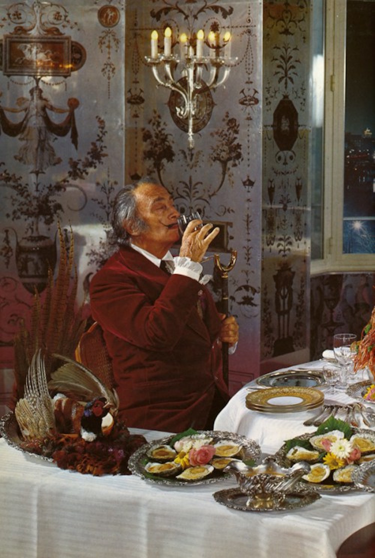 Those interested in taking on the challenge of cooking Dalí-style will also need to throw their diets out the window. Dalí writes from the outset, “We would like to state clearly that, beginning with the very first recipes, Les Diners de Gala, with its precepts and its illustrations, is uniquely devoted to the pleasures of Taste. Don’t look for dietetic formulas here. We intend to ignore those charts and tables in which chemistry takes the place of gastronomy. If you are a disciple of one of those calorie-counters who turn the joys of eating into a form of punishment, close this book at once; it is too lively, too aggressive, and far too impertinent for you.”