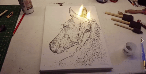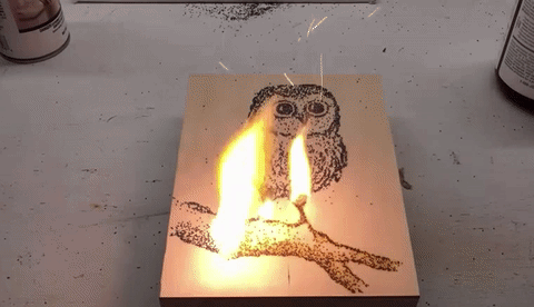 Once the artwork is lit, it quickly burns: