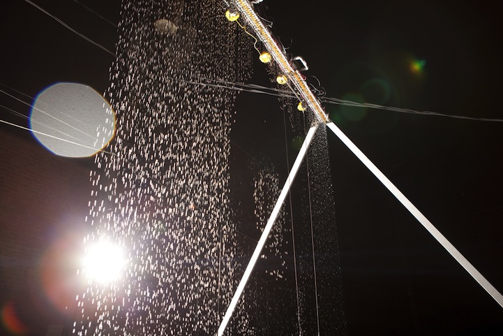 This interactive installation, the brainchild of Mike O'Toole, Andrew Ratcliff, Ian Charnas, and Andrew Witte, is the evolution of the team's original creation, the Deus Ex Machina, which is also a swing set that releases water. (Though it was more of a large-scale printer expelling water in the shape of letters and images.) For this project, the band of artists and engineers collaborated to produce a computerized mechanism that manifests an inexplicable amount of high-spirited fun for the 2011 World Maker Faire, where visitors took delight in testing it out. Check out the video, below, to see the Waterfall Swing in action.