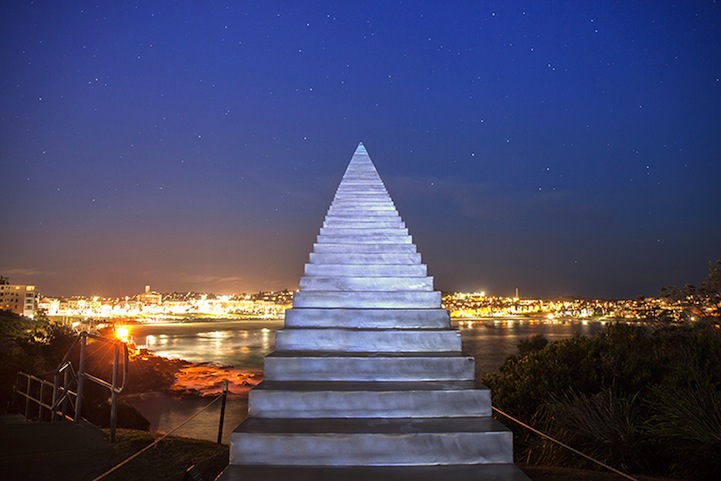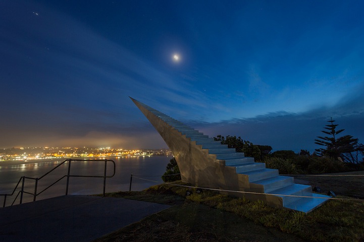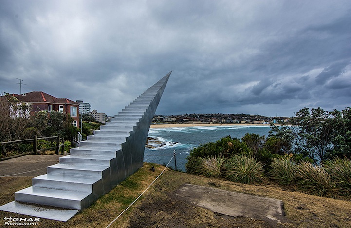 Diminish and Ascend is a sculptural installation by artist David McCracken that, from certain angles, looks like a never-ending staircase. Part of the annual event known as Sculpture by the Sea in Bondi, Australia, the staircase is one of the most eye-catching pieces at the outdoor exhibition this year that allows the mind to wander and imagine a surreal escape. Though it appears to be a long climb to the top that goes beyond the Earth's atmosphere, it is nothing more than an optical illusion.