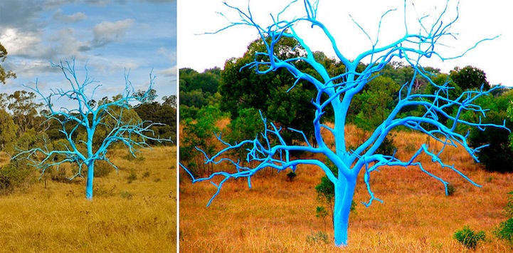 “The trees that I paint are long dead and weathered by hundreds of years. What I do is bring ‘life' back to the tree in a completely new way. This tree which was once dead is now vibrantly alive to be noticed by all, no longer blending in with all the other dead trees.”