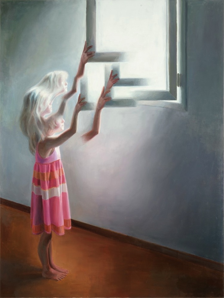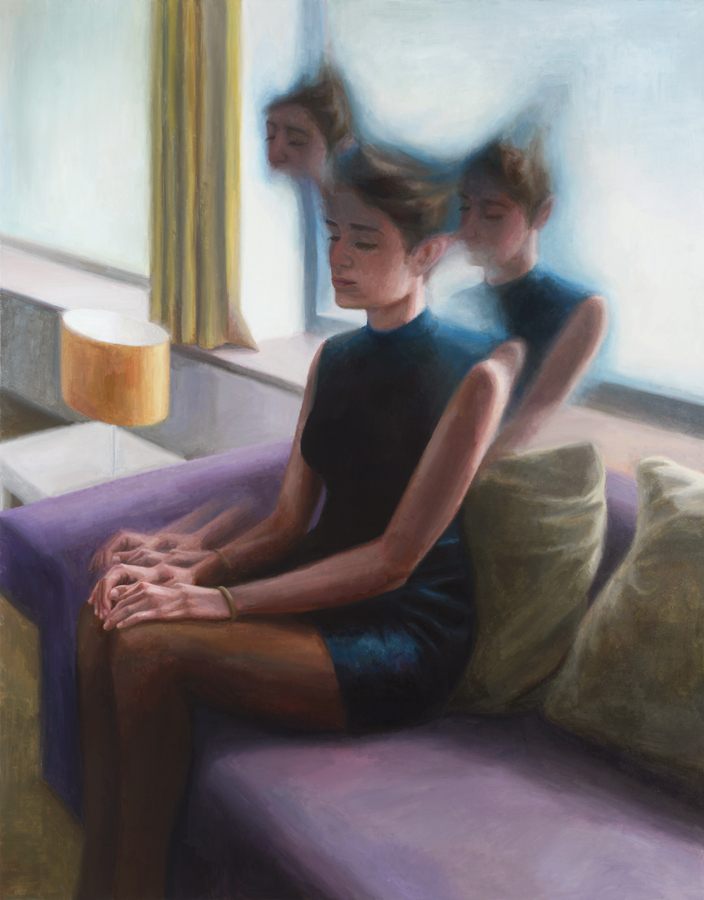 The figurative paintings are creatively executed, displaying each subject as a person with multiple physiques. One is their true physical form while the others are an extension of themselves, like their souls are escaping their bodies. The hazily surreal depictions offer a sense of uncertainty that comes with the many choices one has to choose from in any given situation.
