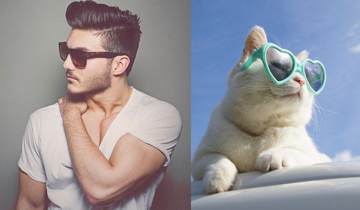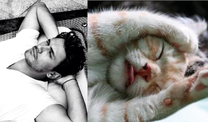 If there's two things the Internet loves, it's good-looking men and cats–put them together and it's the best of both worlds! Years ago, the clever blog Des Hommes et Des Chatons (Men and Cats) began pairing pictures of attractive guys with adorable felines who each strike similar poses. Celebrities, models, cats, and kittens are all featured in side-by-side comparisons, with every human-animal combination complementing one another in mannerisms, attitude, or attire.