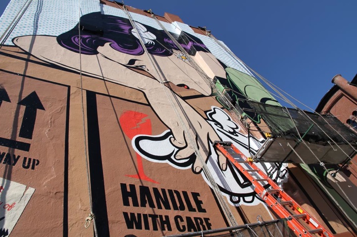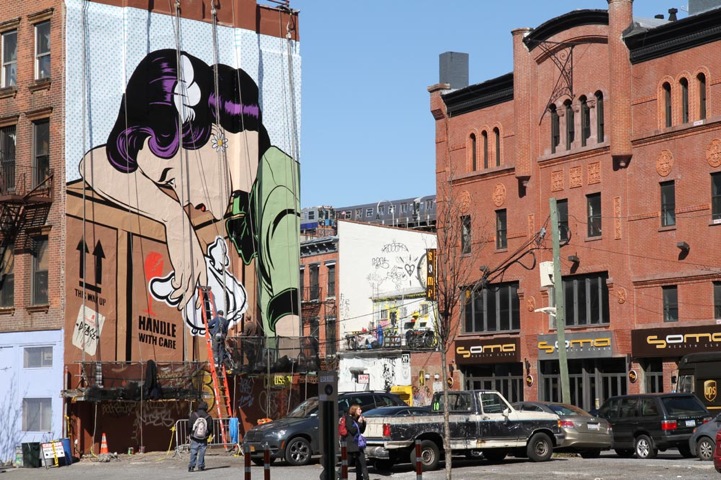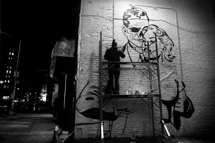 D*Face's large-scale creations can be seen by passersby in Manhattan's Soho (on the corner of Prince and Spring Street) and Brooklyn's Williamsburg (at 158 Roebling).